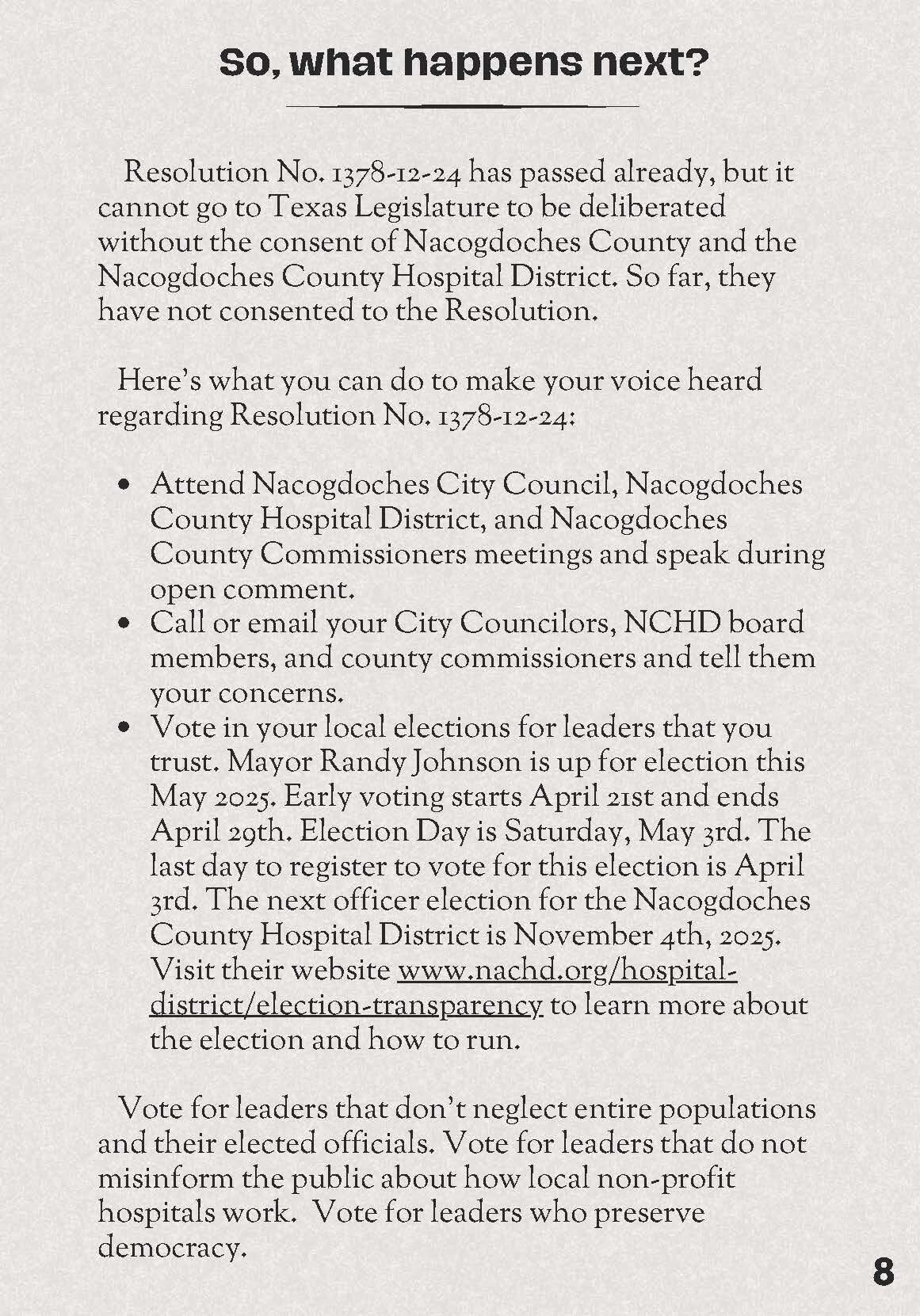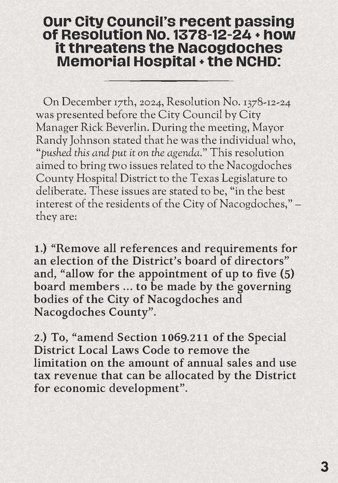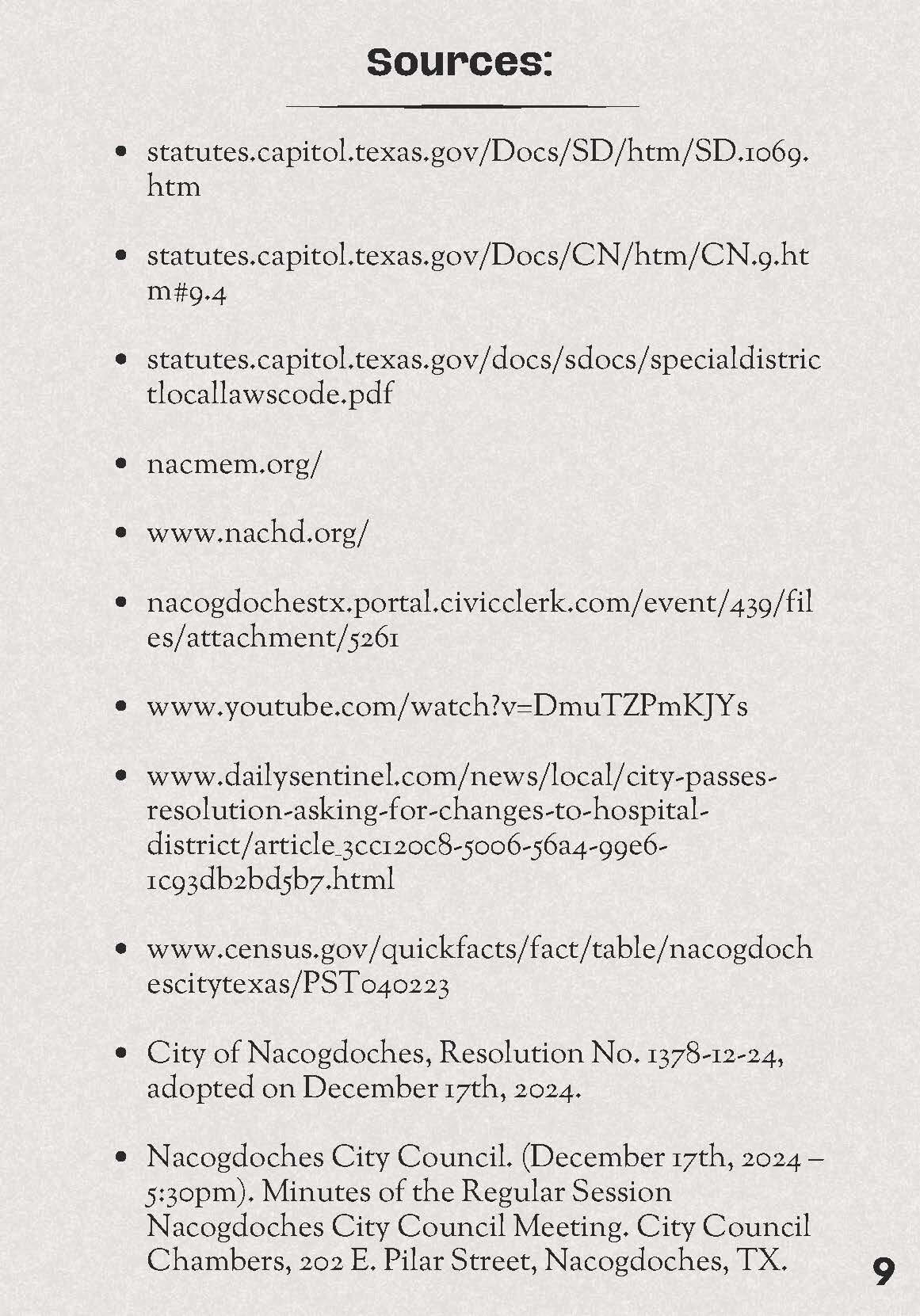 Nacogdoches Memorial Hospital, the Nacogdoches County Hospital District, and Resolution No. 1378-12-24